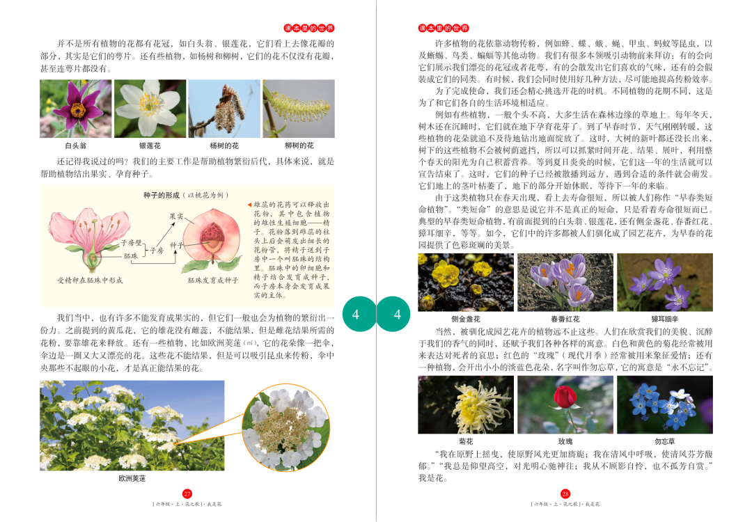 六年级上册第4课《花之歌》,根据课文,《年级阅读》拓展了以下四部分内容。