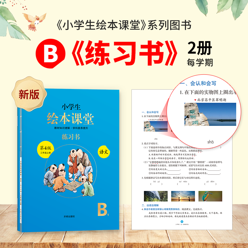 《练习书》自然重在练,包含课内练、课后练、单元练、期中练、期末练,全面检测孩子学习成果。