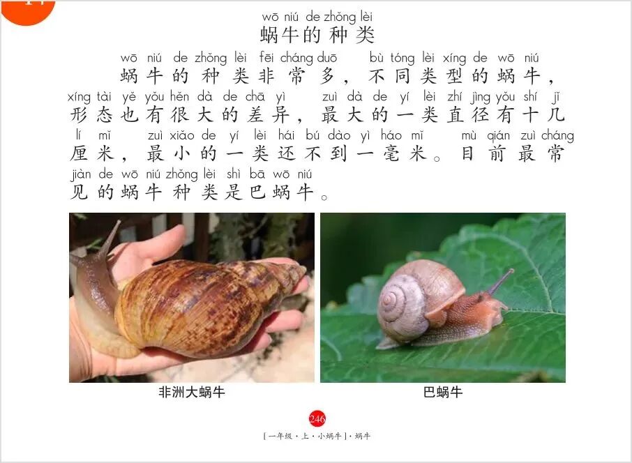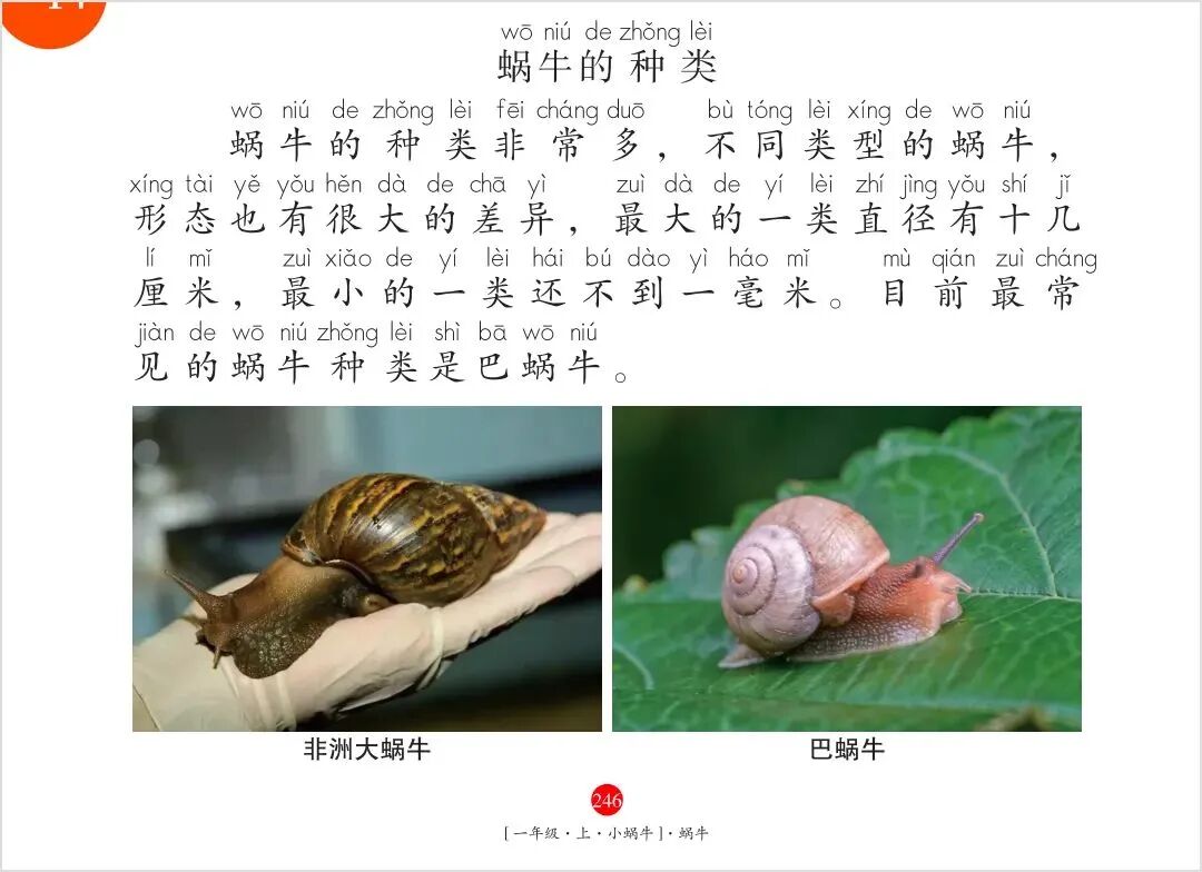 如:1上《年级阅读》中,因非洲大蜗牛有毒,不应用手直接接触,为避免误导学生,故更换了其配图——图中戴了手套。