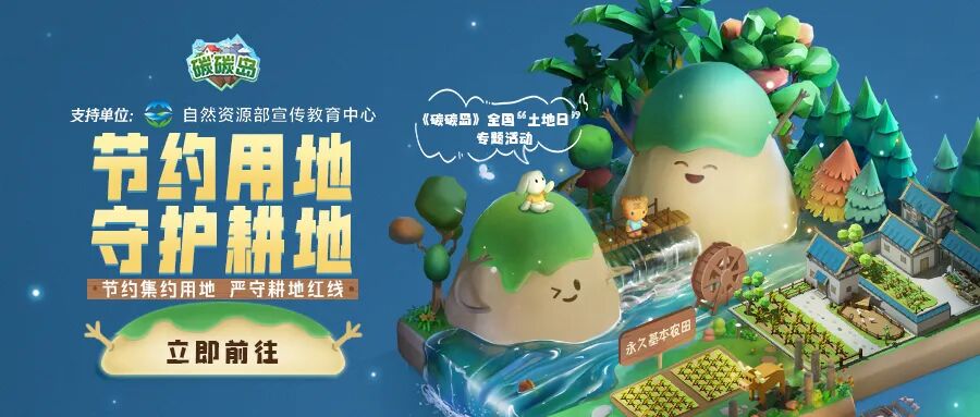 活动内容:活动期间,寻找碳碳岛中游览的碳宝宝,点击互动即可参与答题。每天可以进行10次答题,答题内容均为与全国“土地日”主题相关的知识。只要参与均可获得奖励,活动期间记得来参加哦!