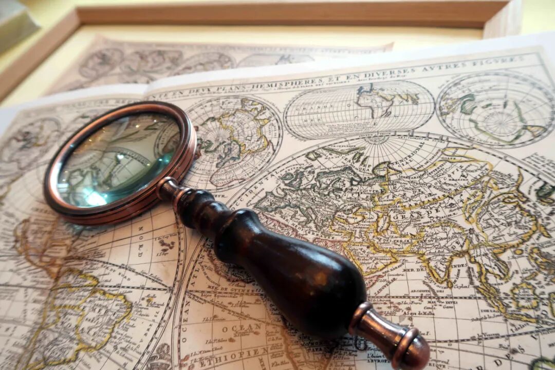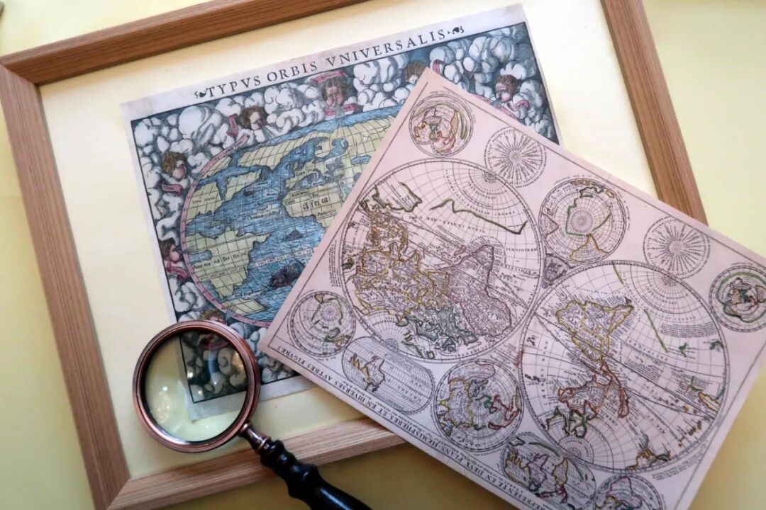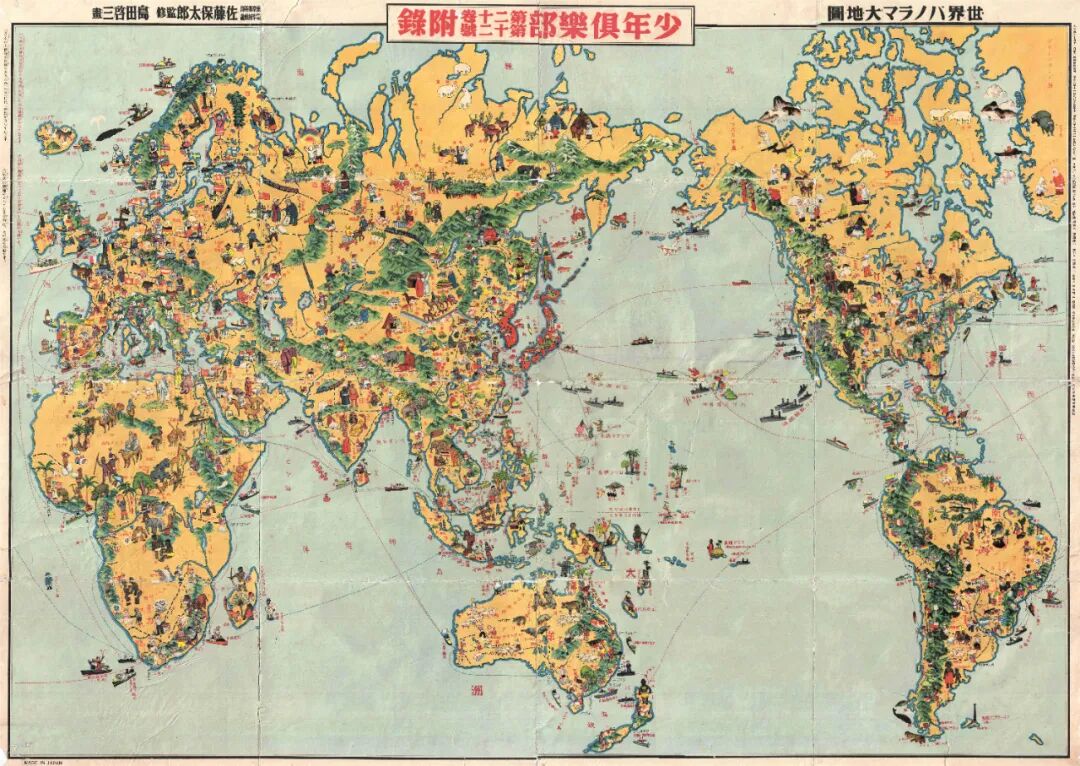 地图不仅是科学考察和浪漫想象的载体,还是统治者和制图者对其所要描绘空间的个性化观察和阐释,记录了他们所处时代的视野和立场。例如,《地球万国方图》在出版之前,美国强迫日本签订了《神奈川条约》,并同意开放全球贸易。尽管这是一份不平等条约,但日本也因此融入全球贸易,从中受益匪浅,不断吸收新思想和新技术。今天,你在英国旅行时,会发现几乎每个城市都有至少一家老店,专门售卖古旧地图和版画。这是因为英国是历史上著名的“日不落帝国”,那些精美的地图和航海图是当时大英帝国崛起的秘密武器之一。跟着地图闯世界