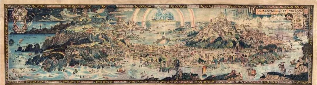《地图时光机》中还有一些与天文、占星相关、带有神话和传说色彩的梦幻地图,无论从设计还是理念上都非常精美。书中选取的《梦幻岛古地图》作于1918年第一次世界大战结束时,是纯精神层面美妙国度的展现。