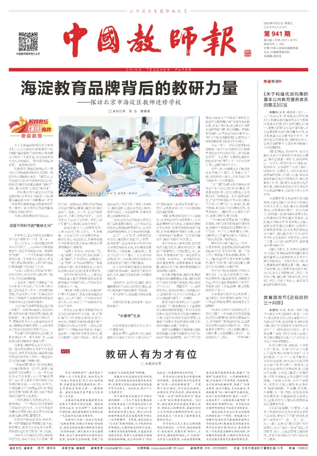 海淀进校只是我们关注的教研机构转型的一个缩影。伴随着《关于加强和改进新时代基础教育教研工作的意见》和《基础教育课程教学改革深化行动方案》的出台,我们需要进一步发现基层教研机构的经验,讲好教研员的故事,让教研力量真正成为实现教育高质量发展的重要支撑。
