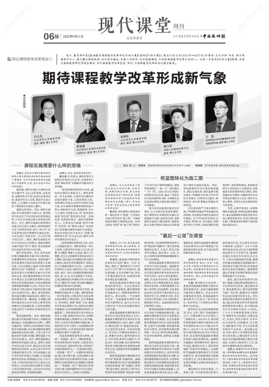 为进一步落实《行动方案》精神,本报与课程教材研究所联合推出“深化课程教学改革笔谈”系列,为课程教学改革的深化建言献策。