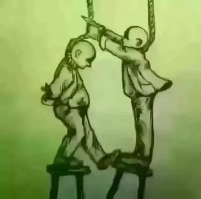 你帮人家剪绳子,人家却在踢你脚下的凳子。