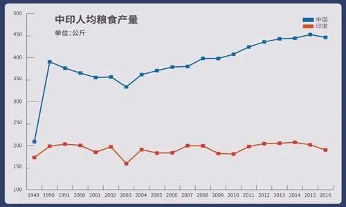中国虽然面积很大,但全国只有16.13%的土地适合农业耕种。印度就不一样了,全国51.61%的土地适合农业,且一年三熟。所以印度的耕地面积比中国还高,且降雨量非常大,远高于中国江南地区,从不担心缺水的问题。印度全国平均年降雨量高达1200毫米,官方把年降雨量低于750毫米的地方称之为干旱地区。这个标准能把中国人给气死,因为中国的鱼米之乡也就这个降雨量水平。湖广熟,天下足,但湖广的年降雨量也就800毫米左右,按印度标准刚刚脱离干旱地区的贫困线。。。印度拥有如此得天独厚的农业生产条件,成为全球第三粮食出口大国好像是理所当然的事情,毕竟老天爷赏饭吃。我这有组数据,2015年中国粮食产量6.21亿吨,印度粮食产量2.52亿吨,印度不足中国的一半。但中国的人口是13.71亿人,印度人口13.11亿人,两国差不多。这就导致中国的人均粮食生产量达到了453公斤,印度为192公斤。1961年,中国遭遇三年自然灾害,人均粮食产量暴跌至历史最低值,数据为207公斤。而在西方媒体上年年都被饥荒的朝鲜,其国内人均粮食生产量也达到了280公斤,远高于印度。没想到吧,印度身为世界第三粮食出口大国,其国内粮食产量比中国三年自然灾害时期和朝鲜都要低。![]()
