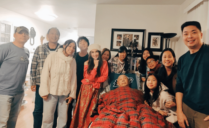 不过温碧霞的公公其实也在美国,她和老公一起去看望老人。不过公公看起来年事已高,健康状况不是太好。