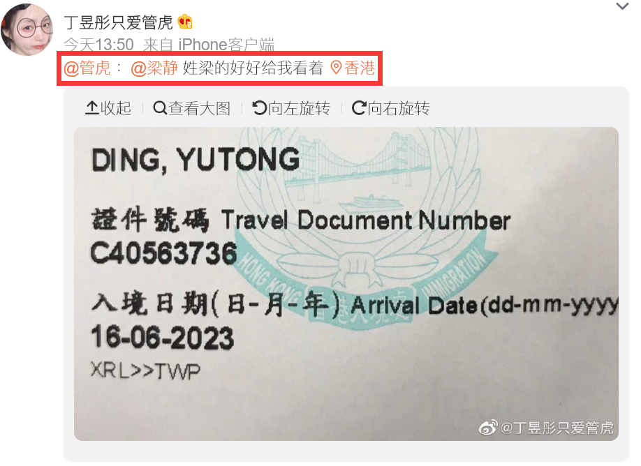在16日下午一点多的时候,丁昱彤公开了她已经到达香港的消息,并艾特了管虎和梁静,她嚣张地表示:“姓梁的,好好看着我!”