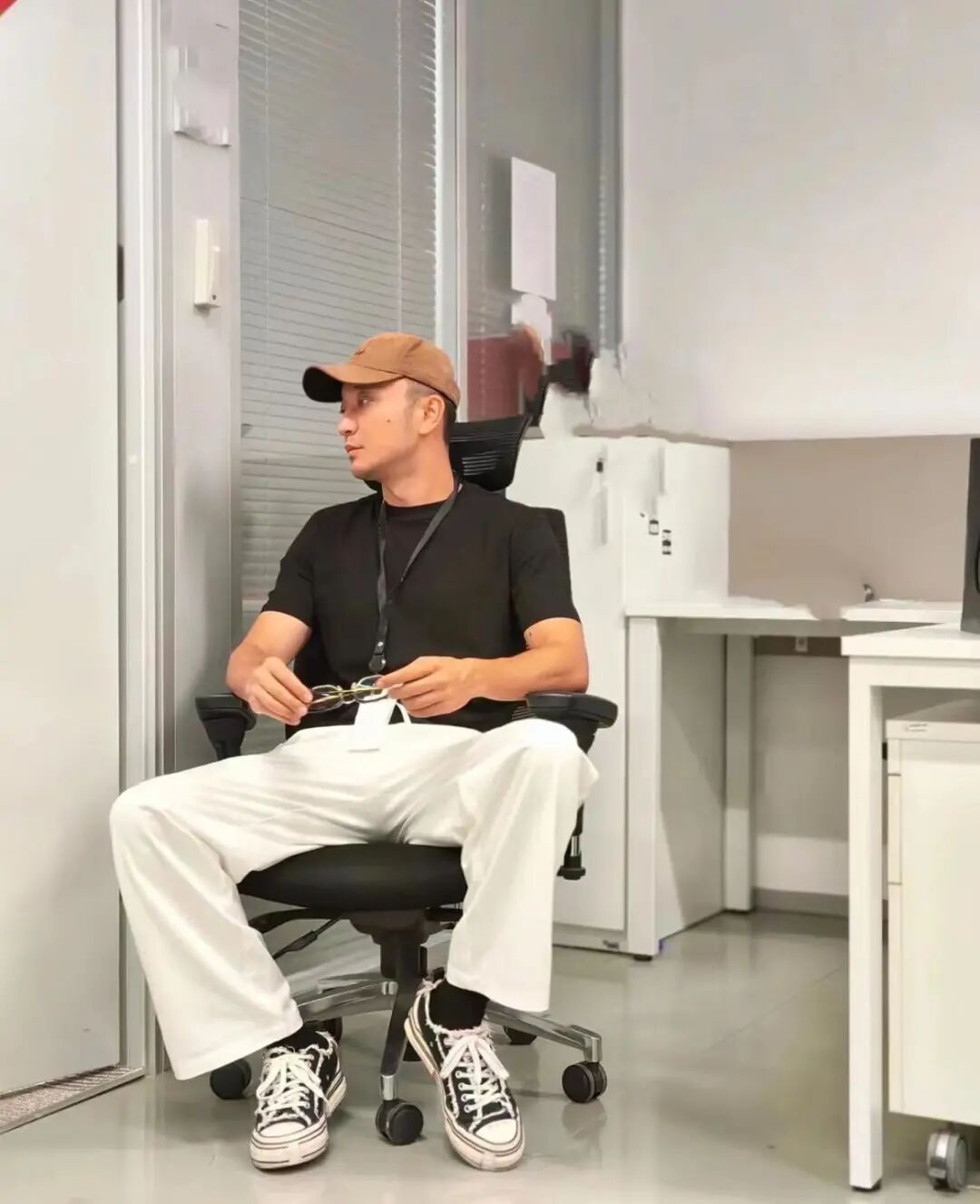 照片中,尼格买提坐在椅子上,双手放在身后,眼神坚定地盯着镜头。但是,他的面色显然有些苍白,整个人看起来也无精打采,似乎内心压抑着沉重的思绪。