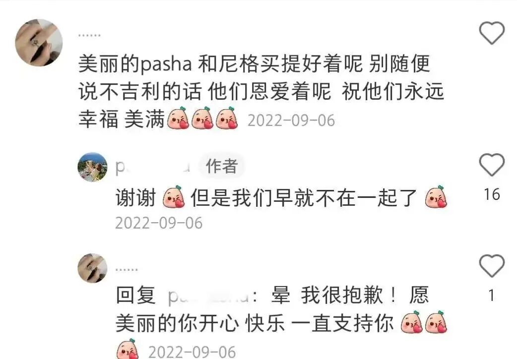 然而,去年,帕夏在社交平台上公开确认了他们已经分手的事实。其实,之前就有粉丝注意到尼格买提和帕夏的互动频率在逐渐减少,特别是在2019年帕夏出国深造后,两人再也没有在公众面前出现在一起,而在尼格买提晒出的全家福中也不再有帕夏的身影。