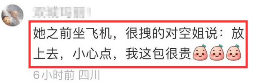 有人曾批评她在飞机上向空姐提及自己的包包价值不菲,这个情况是否属实,或者是语气表达问题,我们并不得而知。