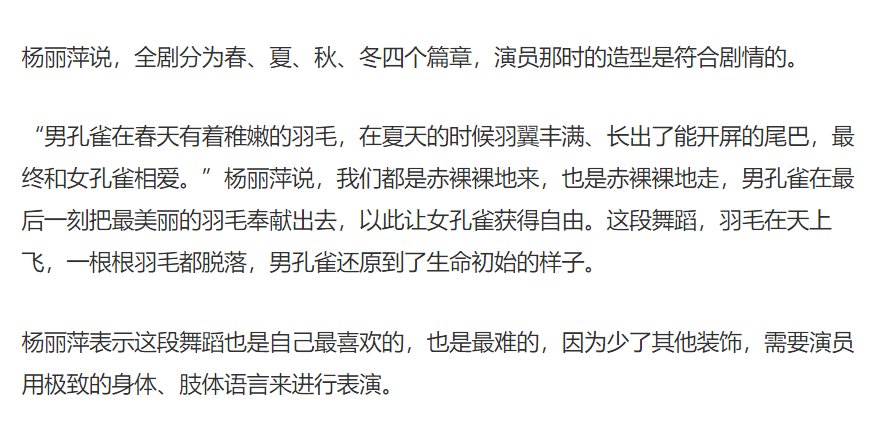 因此,杨丽萍的解释完全符合逻辑,对于杨丽萍这样的艺术家,我们应当给予充足的尊重和肯定。