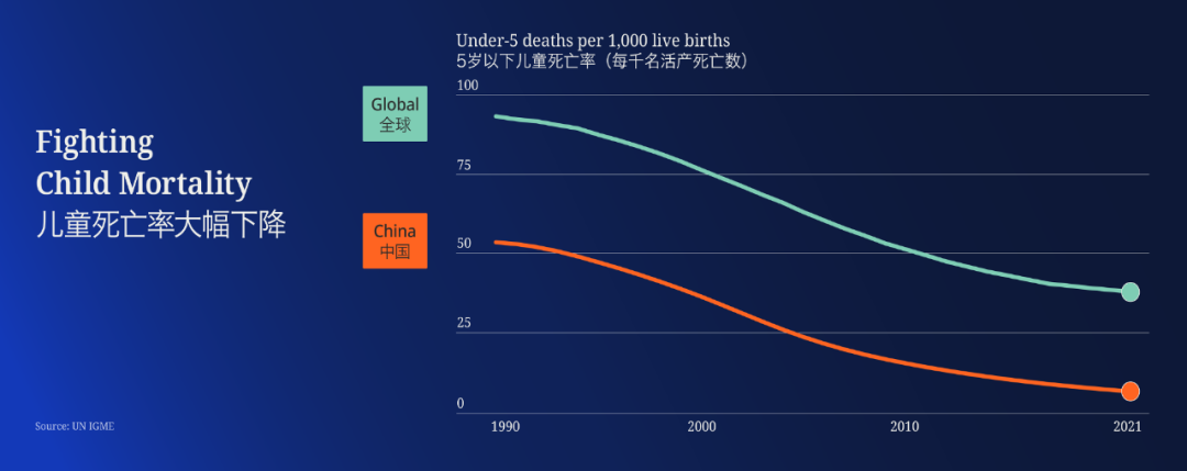 到2000年,它根本没有下降多少,这10%的儿童死亡主要发生在较低收入国家,而其中许多是我们有办法避免的。现在,五岁以下儿童的死亡率已经大幅下降到二十五分之一。我们把儿童死亡人数减少了一半以上,这意味着750万儿童的生命得到了挽救。但当我们每年可以挽救的儿童生命达到750万这样一个量级时,几乎很难想象这是一个多么伟大的成就。在这个领域取得的巨大进步可以说是本世纪初以来发生的最美好的事情。