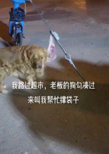 我路过超市老板的狗狗凑过来,教我怎么给它撑开袋子