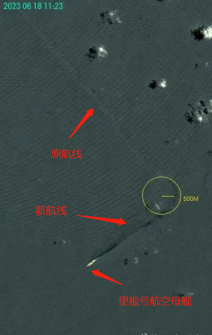 原来就在6月18日,美国里根号航母正在南海活动,从卫星拍到的画面显示,里根号在行进时突然拐了一个90°的直角大弯。