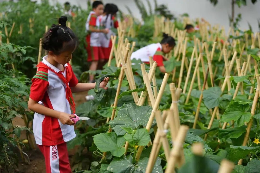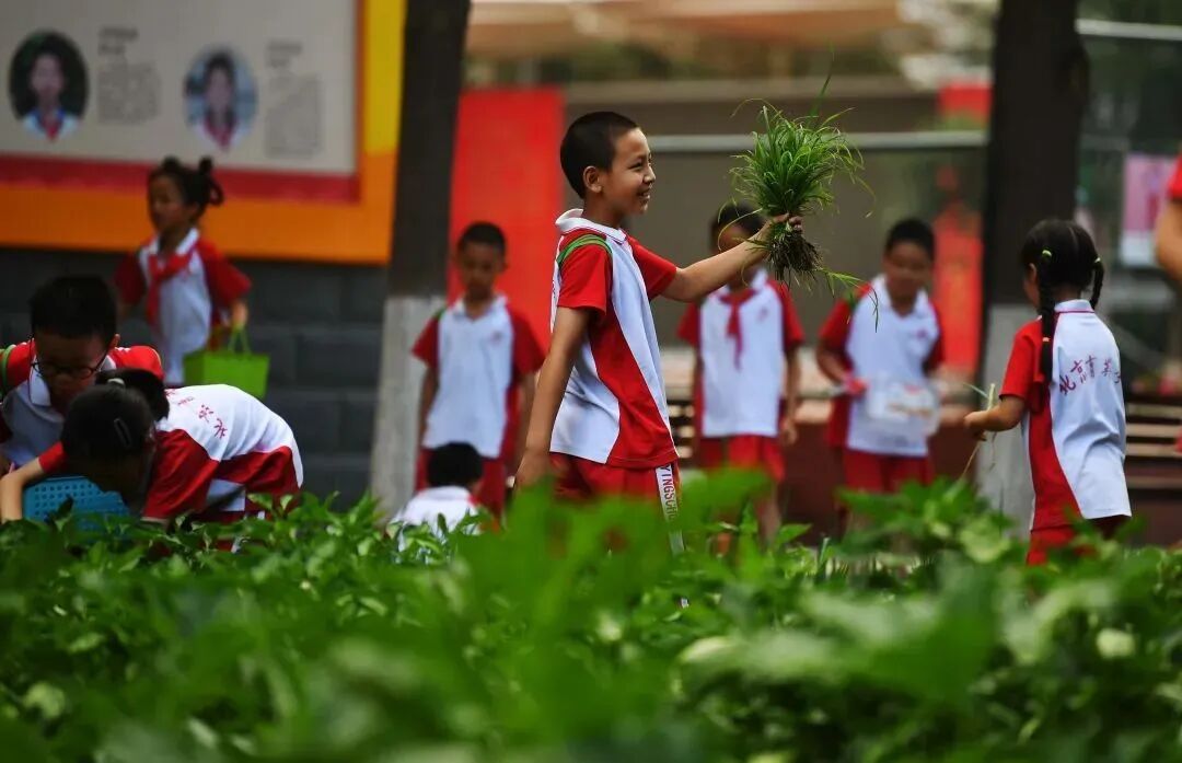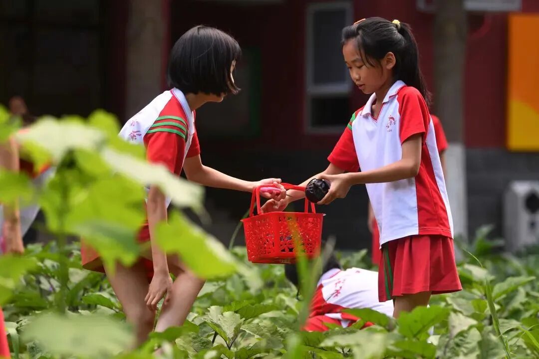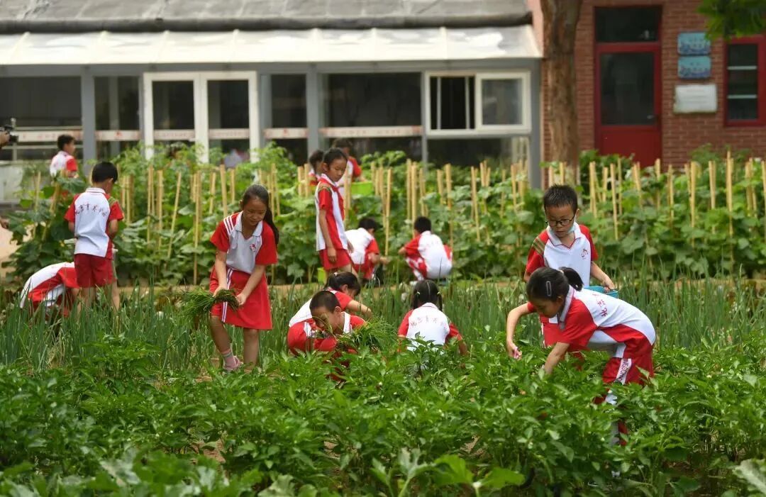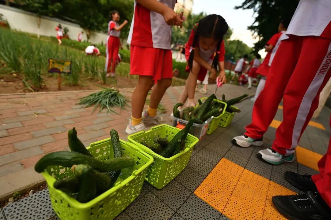 种瓜得瓜,种豆得豆。总书记来的时候,正在拔节的作物迎来了今夏的首次采摘!经过亲手种植、搭架、浇水、除虫、授粉……这座同学们精心侍弄的农场如今硕果累累。6月20日,三年级同学们的期盼已久的种植课之采摘篇章终于到来了:大葱、西红柿、黄瓜、甜菜、西葫芦、茄子、辣椒……亲手收获自己的劳动果实,别提多开心了!