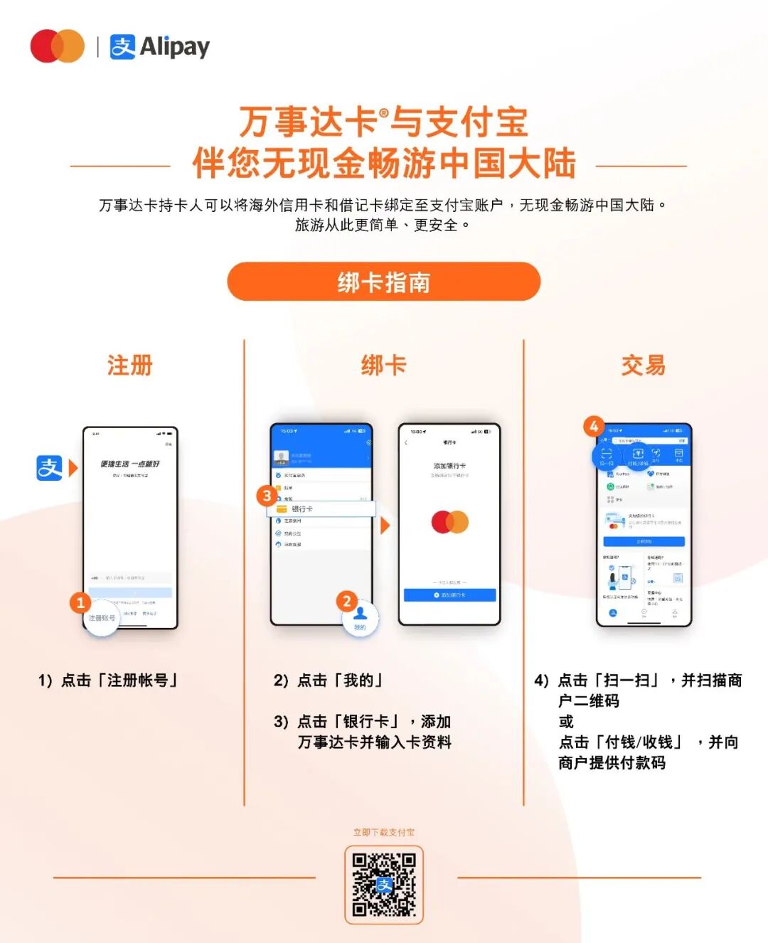基于双方在2019年达成的合作伙伴关系,该服务旨在为广大消费者与商户提供更强大的数字支付解决方案,通过一种便捷、安全的方式,使国际游客能够在身处中国大陆时像本地民众一样进行手机扫码支付。而实现这一切,持卡人只需在支付宝(点击此处下载)数字钱包绑定自己的万事达卡信用卡或借记卡即可,繁琐设置或预付账号充值都已成为“过去式”。