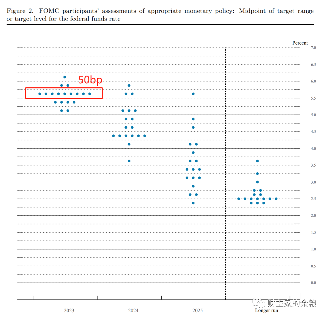 但颇为令人诧异的,是美联储的利率点阵图暗示,今年下半年将再加息50个基点,而且,我认为美联储几乎不可能完成的通胀目标——长期2%,鲍威尔反而极其坚决地,用了一句“无论什么情况发生(Whatever it takes)”来表明其决心。