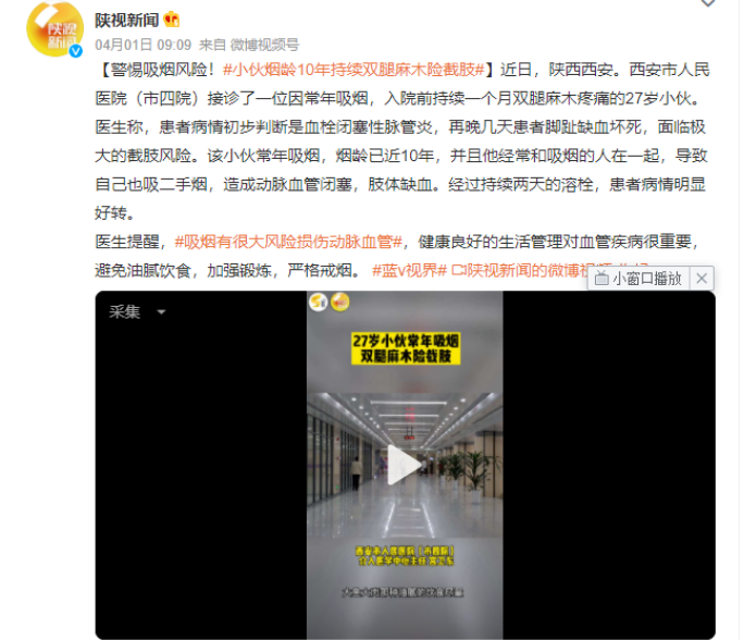 医生告诉他,这是血栓闭塞性脉管炎。