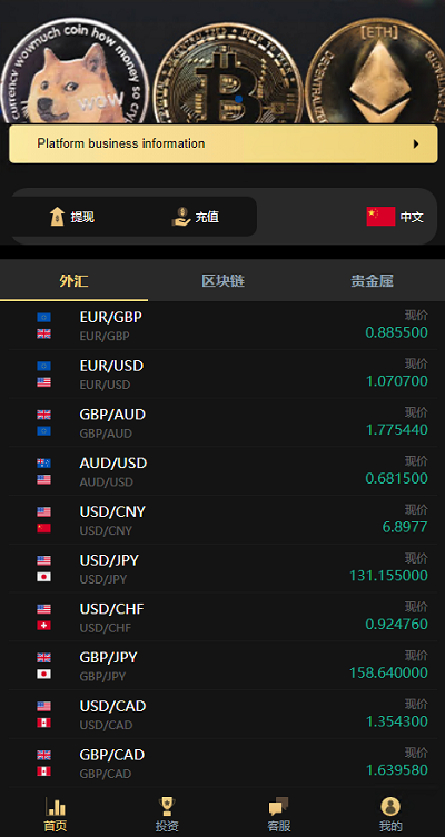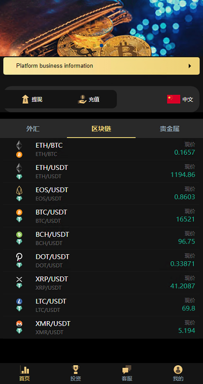 外汇、区块链、贵金属,可USDT充值提现,K线可风控