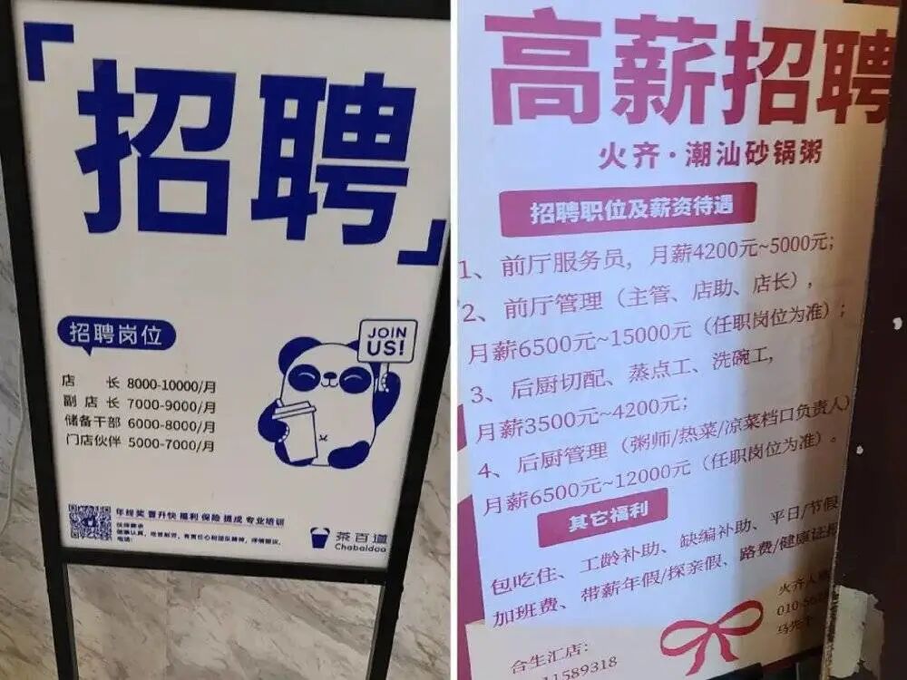 一些有扩张目标的餐饮店开始提高工资,以期抓住员工。一位连锁快餐品牌的店长指着招聘信息的板子告诉内参君,“那上面不作数,我们现在涨薪了,每小时时薪多3块钱,每个店还有分成”。
