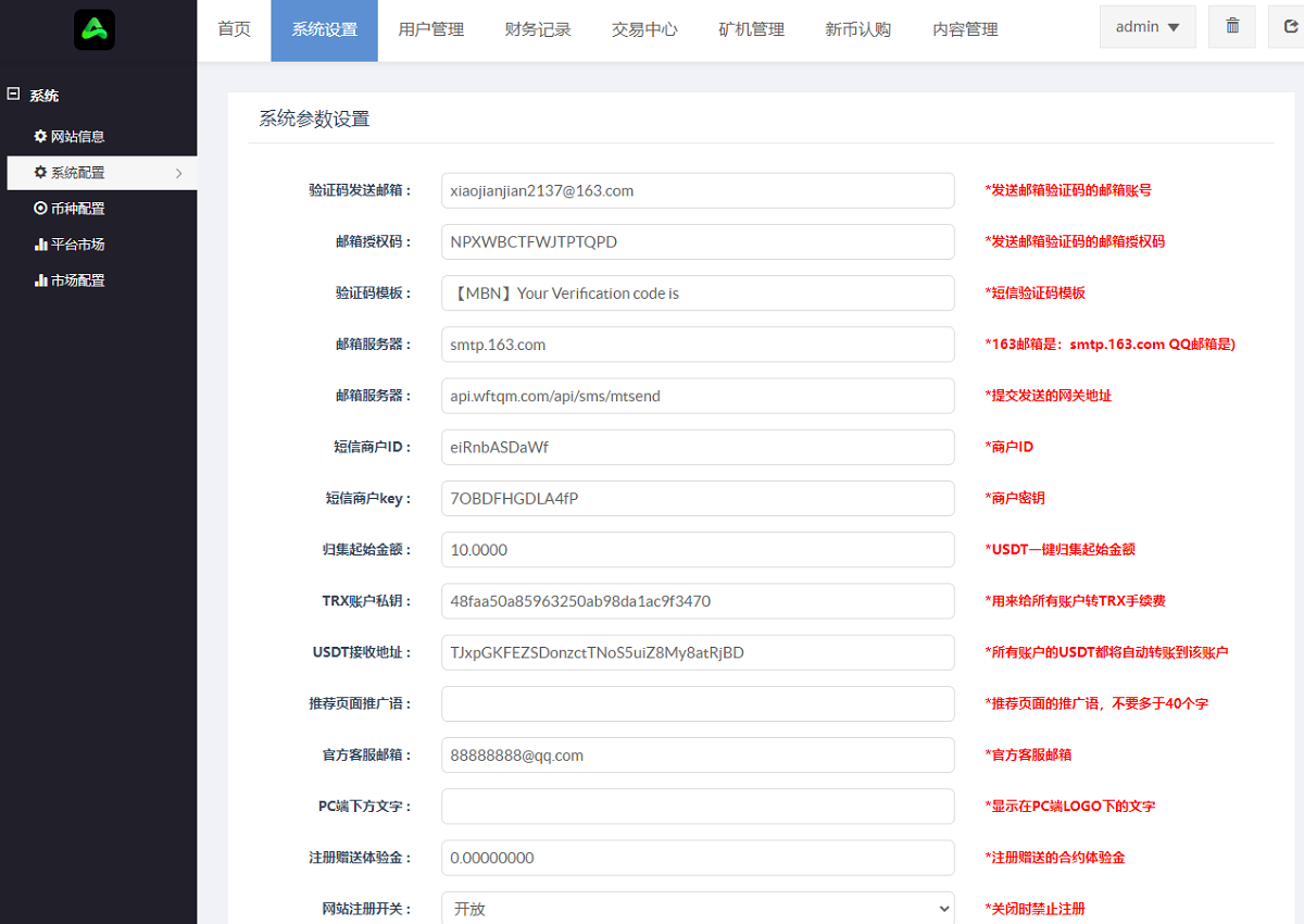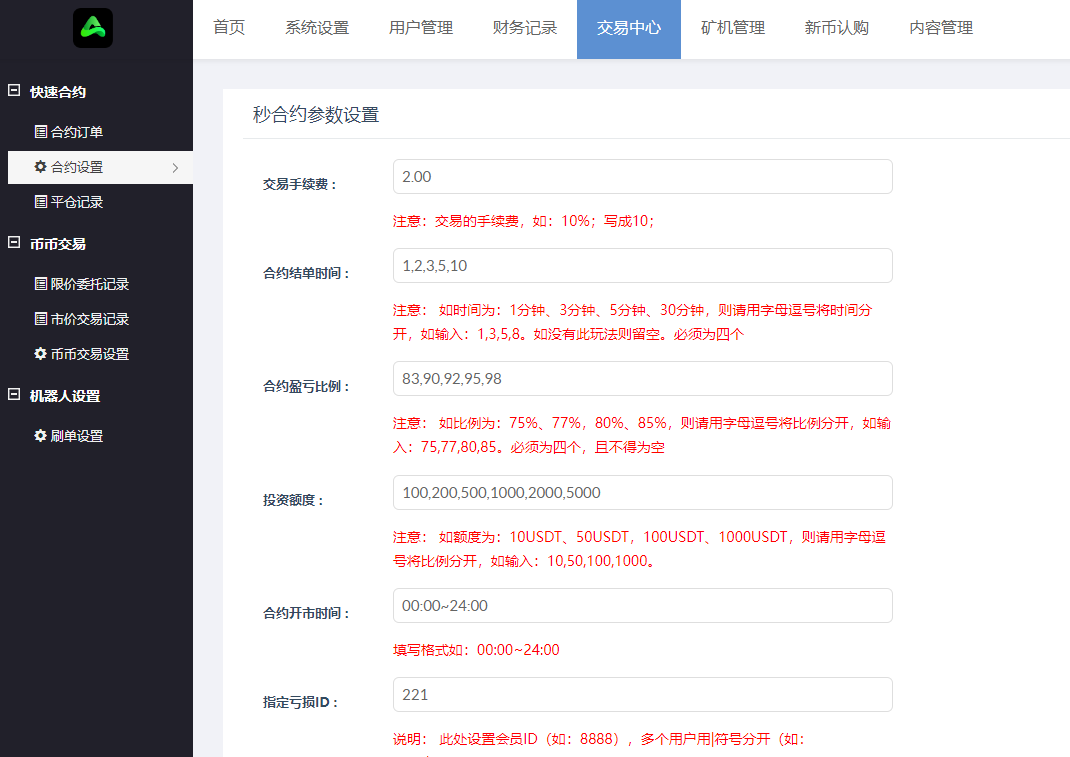 后台新增今日充值和今日提现统计,新增指定用户必赢、必输、正常赔付模式,认购币可以配置每日涨幅
