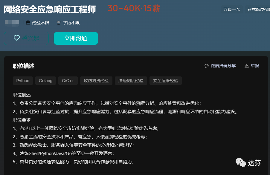 当然经验丰富、技术熟练的网络安全应急响应工程师&专家在薪资方面也是相对较高的,以BOSS招聘为例,网络安全应急响应工程师&专家年薪在50万上下,非常可观!