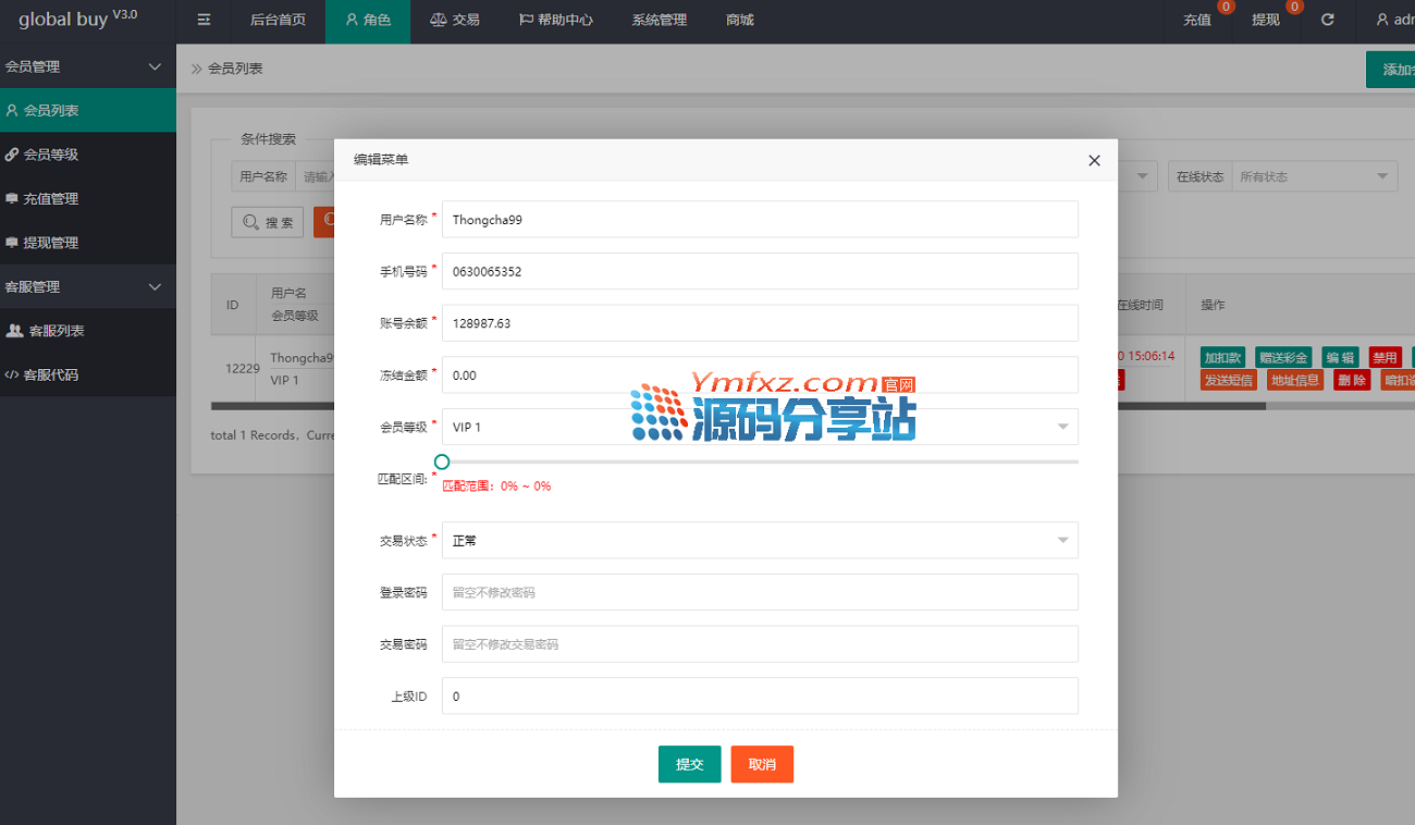 会员等级系统,支持各级会员收益比例与每天接单数量。自由设置各级会员提现手续费,自由设置开通会员价格,风控中心,支持限制会员每天的收益比例;