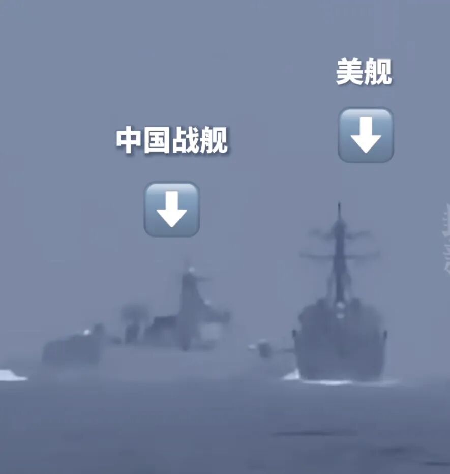 美方军舰刚开始试图要求中方军舰离开航线,以免发生冲突,谁知道中国军舰来真的,美军舰只能减速并转向。