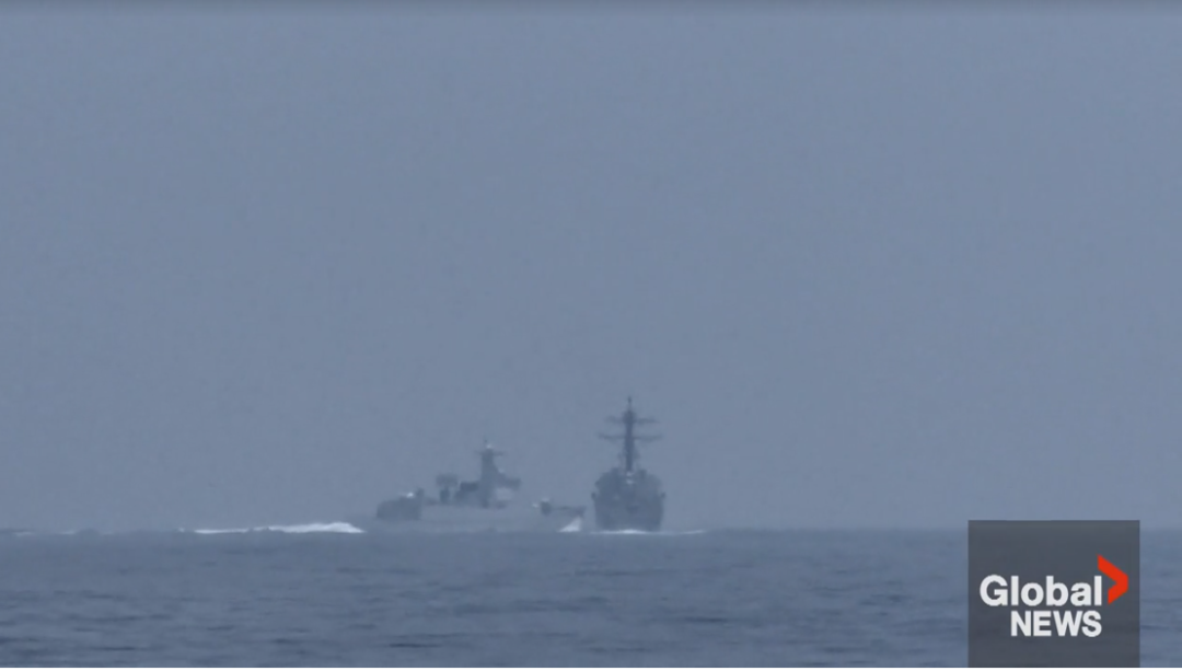 加拿大军舰指挥官说:中方军舰告知美方,他们正试图进入中方领域,需改变航线以免发生碰撞。美舰的回应声称要求中方远离美军舰,但美军舰最终改变航向并减速。