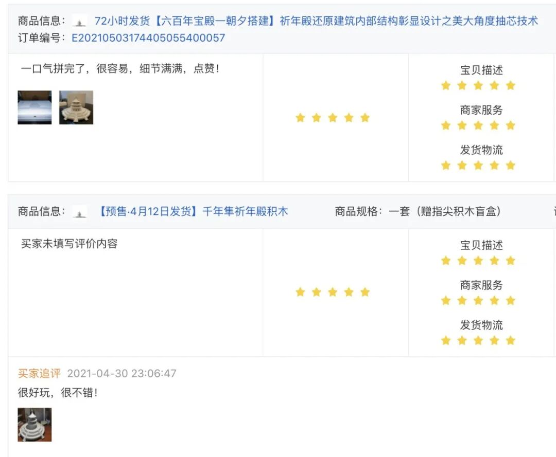 如果你喜欢拼积木,相信也会和他们一样,能享受一波专心致志的闲暇时间,感受到拼装的乐趣。这次,我们直接找到了品牌方,帮大家搞到了五一限时特价。祈年殿彩色版,官方价格1099元,平时做活动都要卖899。再返价值90元的优惠券礼包(优惠券可以在商城内使用。订单完成后,请联系商城客服领取)。趁着这次活动,有计划送礼物的朋友们,这波不要再错过咯。对于一个 800+ 片,直径长半米的大型积木来说(相比于某积木品牌),这个价格,其实不算贵。更何况,榫卯结构的天坛祈年殿彩色纪念版,可以说相当特别了。