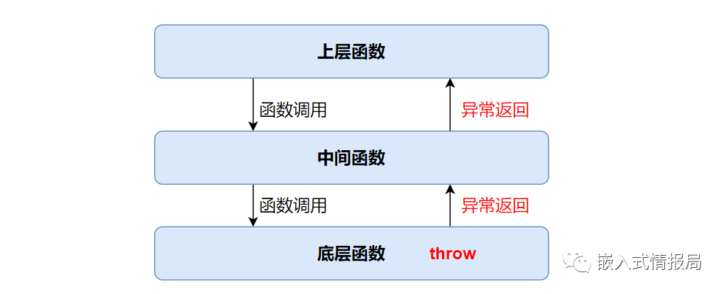 那么C++设计了一套异常处理机制,一方面能够使得异常处理和正常运行代码进行分离,使得程序更加模块化;另一方面,C++的异常处理可以不需要异常处理在异常发生时的同一个函数,而是可以在更上层合适的位置进行处理。