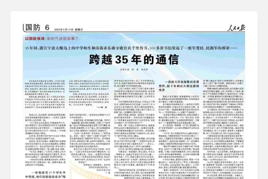 大榭邮政支局的投递员徐友贵主要负责大榭中学片区,但凡有部队的来信,都会格外留意,第一时间送到大榭中学。“有重要的来信,小徐都会打电话告诉我,亲手送到我手中。”胡四海说道。