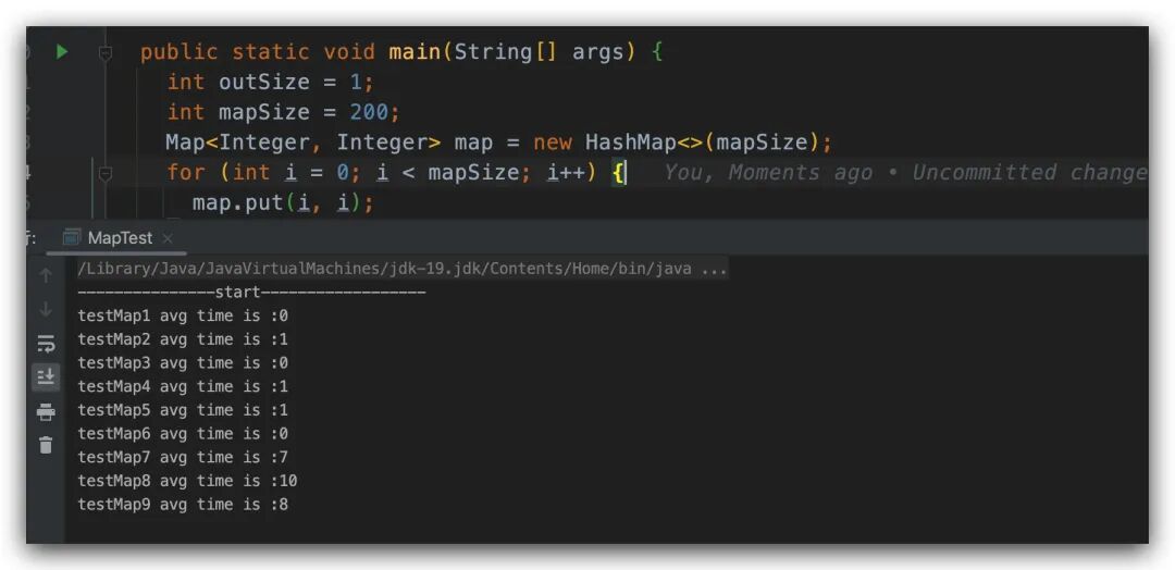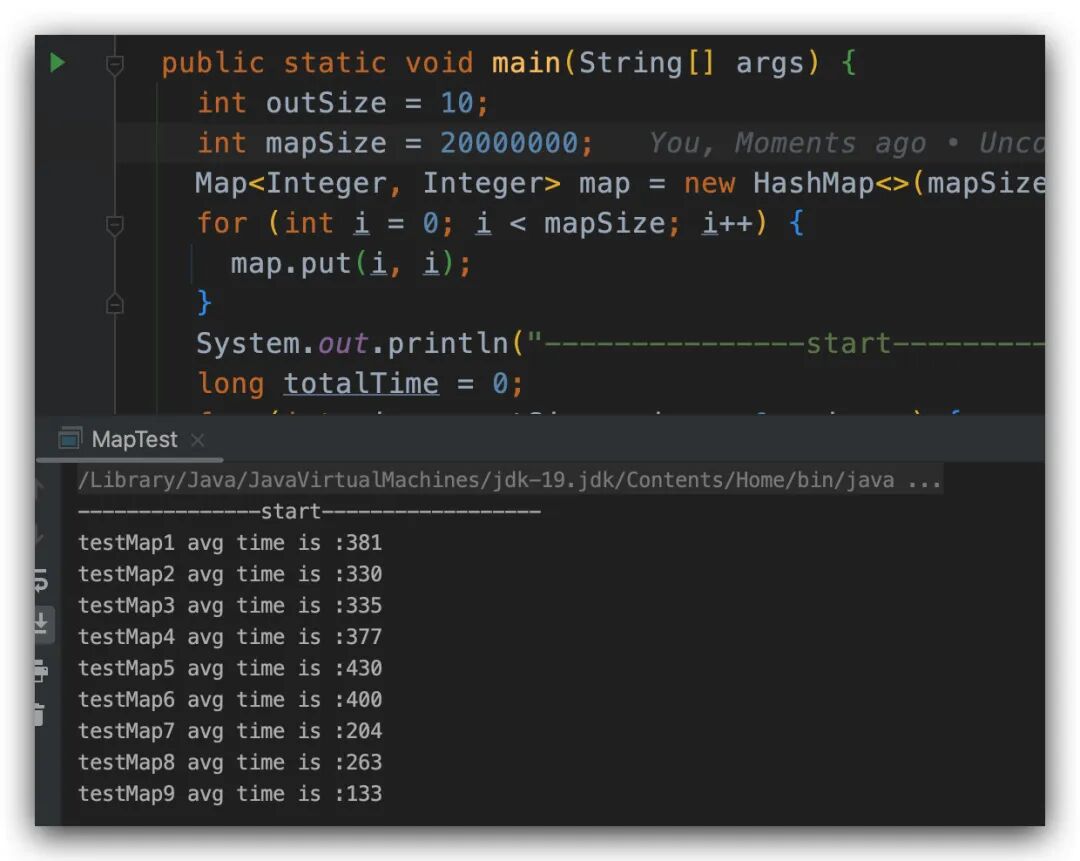 System.out.println("testMap1 avg time is :" + (totalTime / outSize));